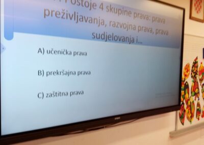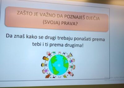 Povodom dječjeg tjedna pedagoginja je osmislila radionice za učenike razredne nastave na temu dječjih prava. Dječja prava su izuzetno važna tema za učenike, međutim, njima mogu biti još apstraktna i nerazumljiva. Sve su radionice imale istu temu, no sadržaj je bio prilagođen uzrastu. Stoga je prvi razred razgovarao o razlici želja i potreba, drugi razred se je upoznao s dječjim pravima, treći s Konvencijom o dječjim pravima, dok je četvrti detaljno razrađivao skupine prava iz Konvencije i analizirao na pričama koje je dječje pravo prekršeno. Učenici su čitali, crtali, pisali i igrali kvizove. Podsjetimo se da je Republika Hrvatska potpisala konvenciju 1991. godine te da bismo se svi trebali pobrinuti da se dječja prava poštuju, bez obzira na dob, spol, rasu ili socijalni status djeteta.