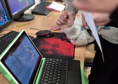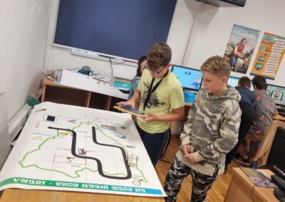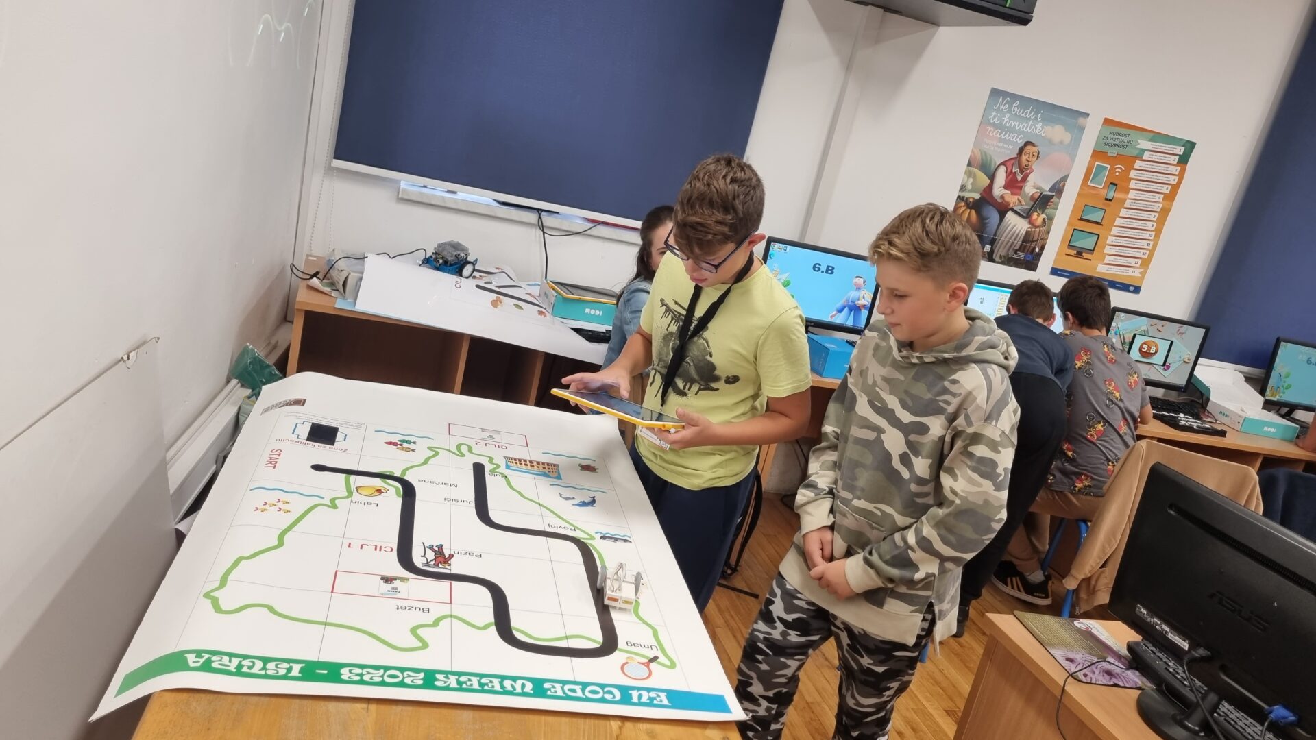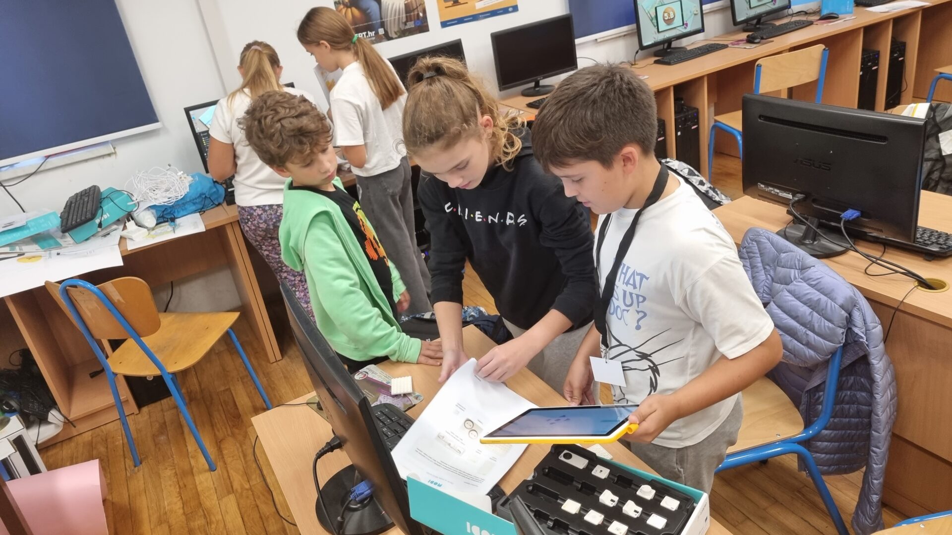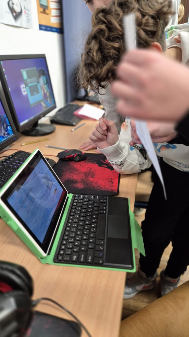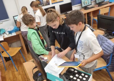 Na nastavi informatike učenici koriste tablete na kreativan i interaktivan način, povezujući tehnologiju s učenjem kroz igru i istraživanje. Pomoću alata Teachable Machine učenici treniraju umjetnu inteligenciju koja putem kamere tableta prepoznaje njihove rukom nacrtane crteže na papiru.