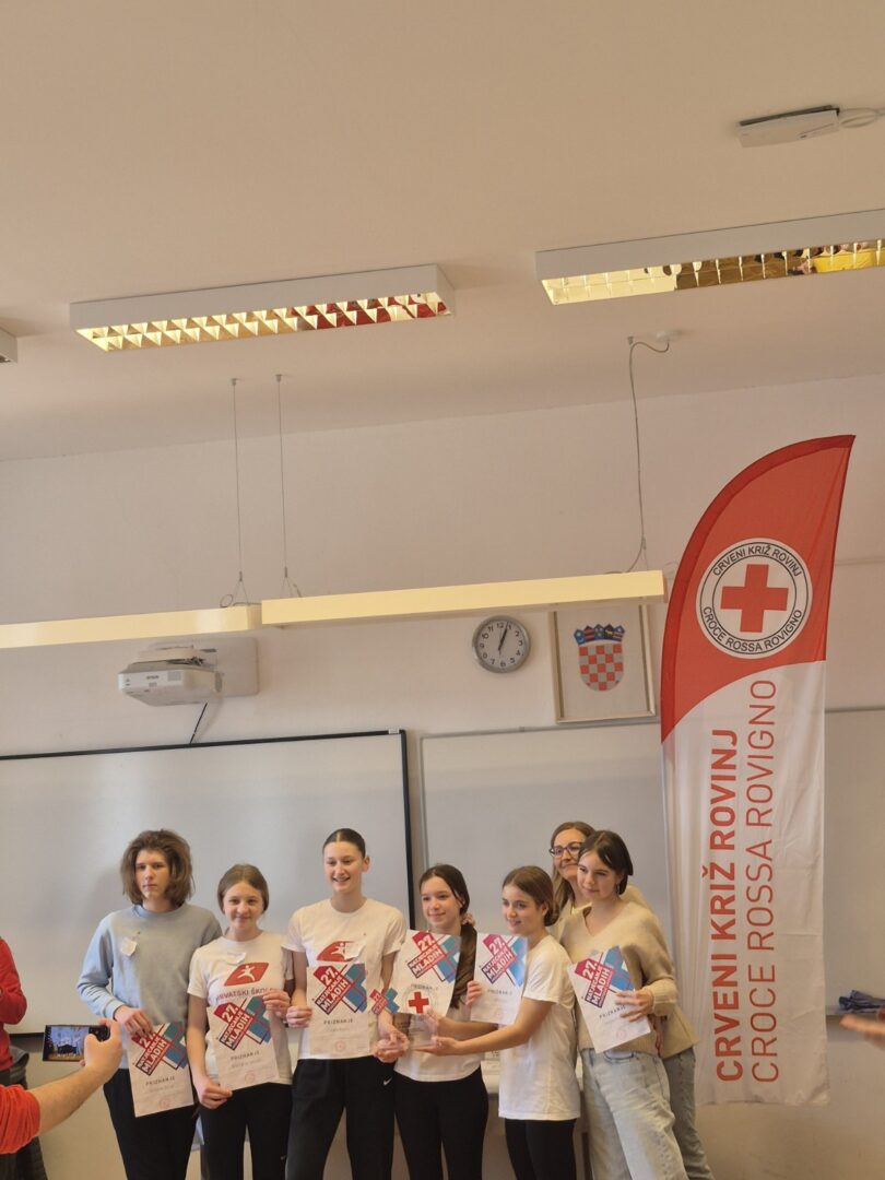 U subotu se je u našoj školi održalo gradsko natjecanje iz Crvenoga križa. Sudjelovalo je šest ekipa, učenici srednjih i osnovnih škola Rovinja te osnovne škole u Kanfanaru. Učenici su trebali pokazati teorijsko znanje, ali i praktično znanje iz prve pomoći koju su pokazali na nekoliko radilišta. Kako bi pružanje prve pomoći bilo što uvjerljivije, na radilištima su bili glumci koji su glumili ozlijeđene. Nakon nekoliko sati natjecanja, za pobjednika osnovnih škola, proglašena je ekipa iz naše škole. Čestitke ekipi Super.Orijentirani.spasitelji (S.O.S.) i njihovoj mentorici!