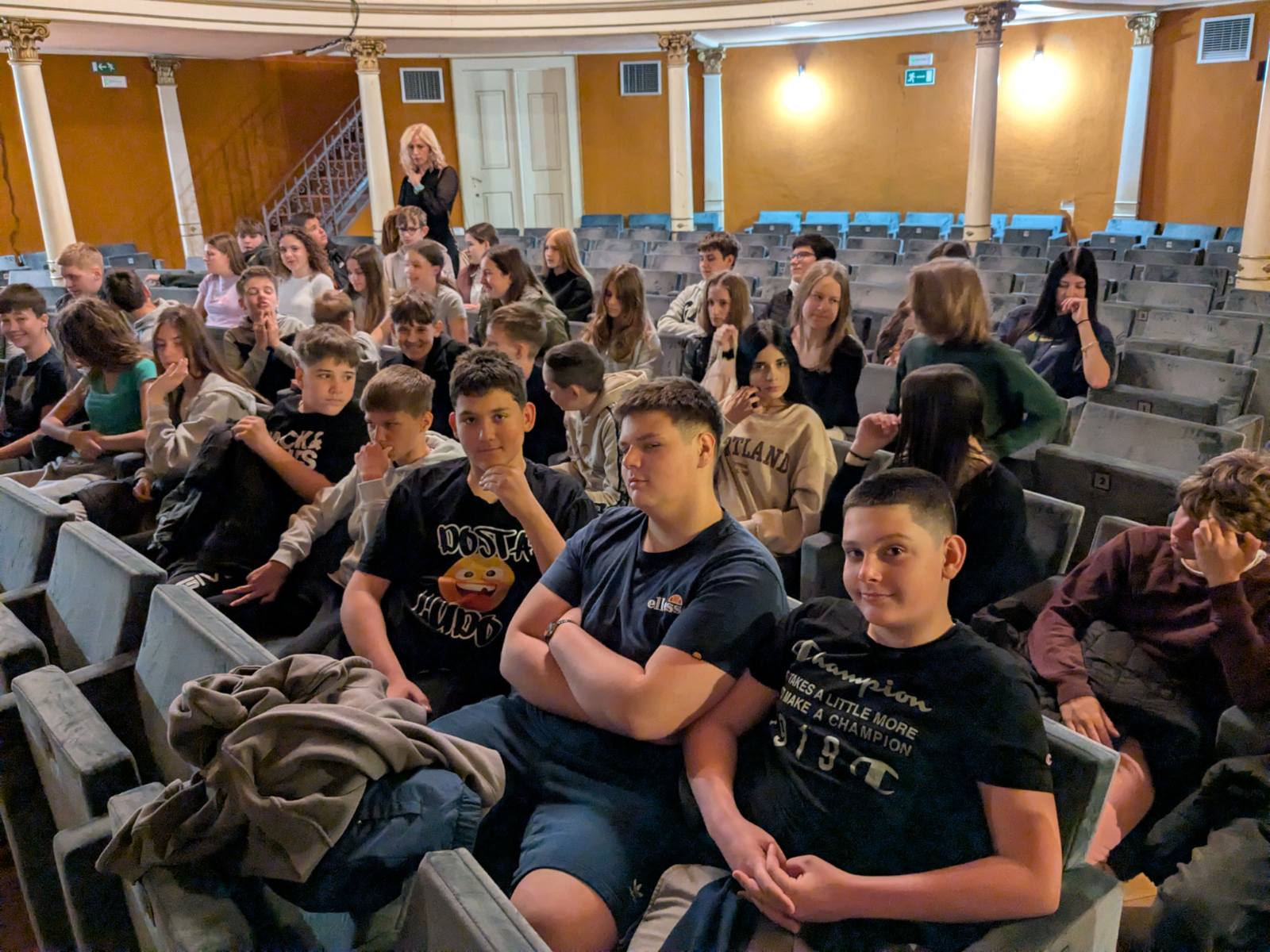 Naši sedmaši 13. travnja posjetili su rovinjsko kazalište i pogledali predstavu „Škola” u izvedbi zagrabačkog Teatra GAVRAN. U monodrami glumi mlada rovinjska glumica Rebecca Aleksić koja je svojim nastupom oduševila publiku. Tematika predstave je vršnjačko nasilje te je cilj bio osvijestiti učenike o važnosti međusobnog uvažavanja, poštovanja i tolerancije.