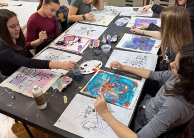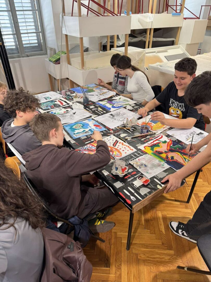 Kroz izložbu nas je stručno i inspirativno vodila Elizabeta Rogović, približivši učenicima umjetnikov stil i način izražavanja. Nakon razgleda, učenici su sudjelovali u kreativnoj radionici tijekom koje su izrađivali kolaže stolica i bavili se slikarstvom po uzoru na Mascarellijev rad.