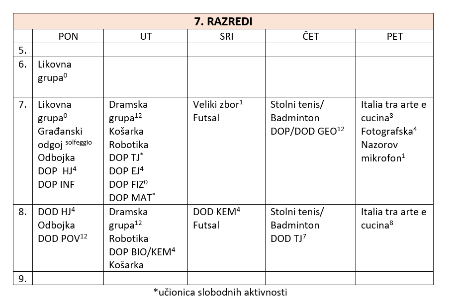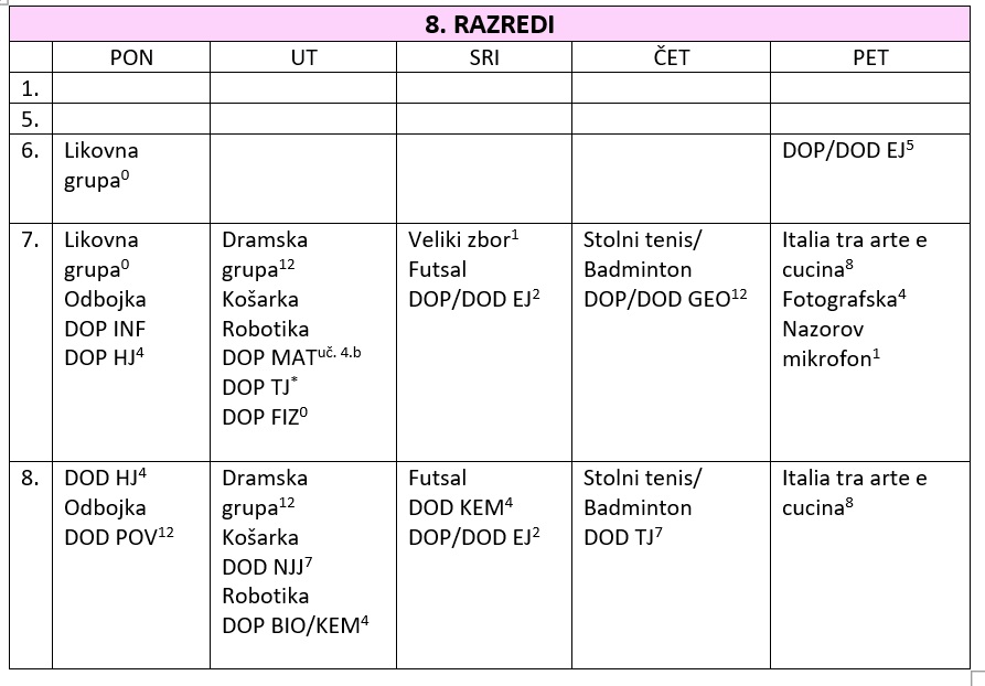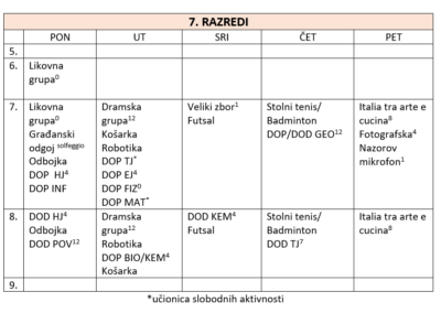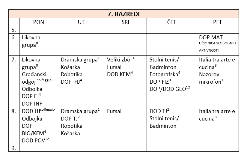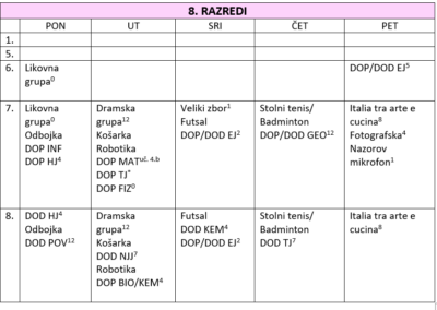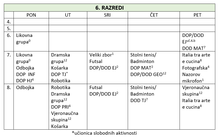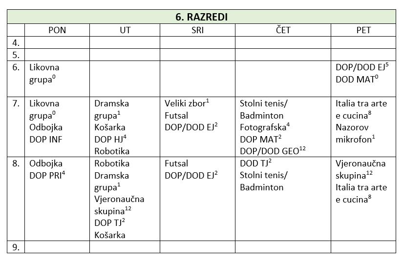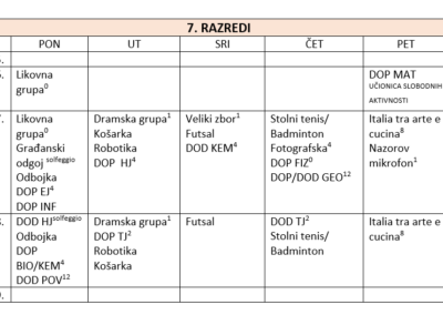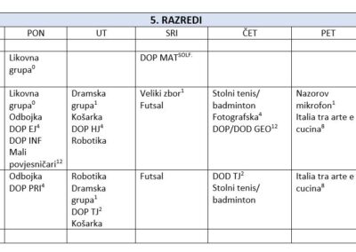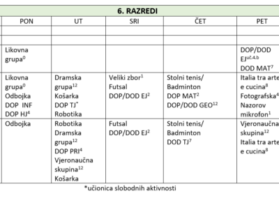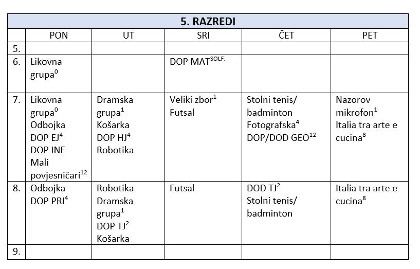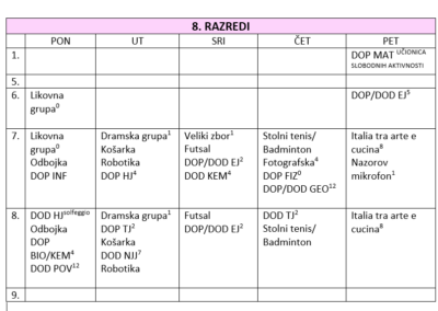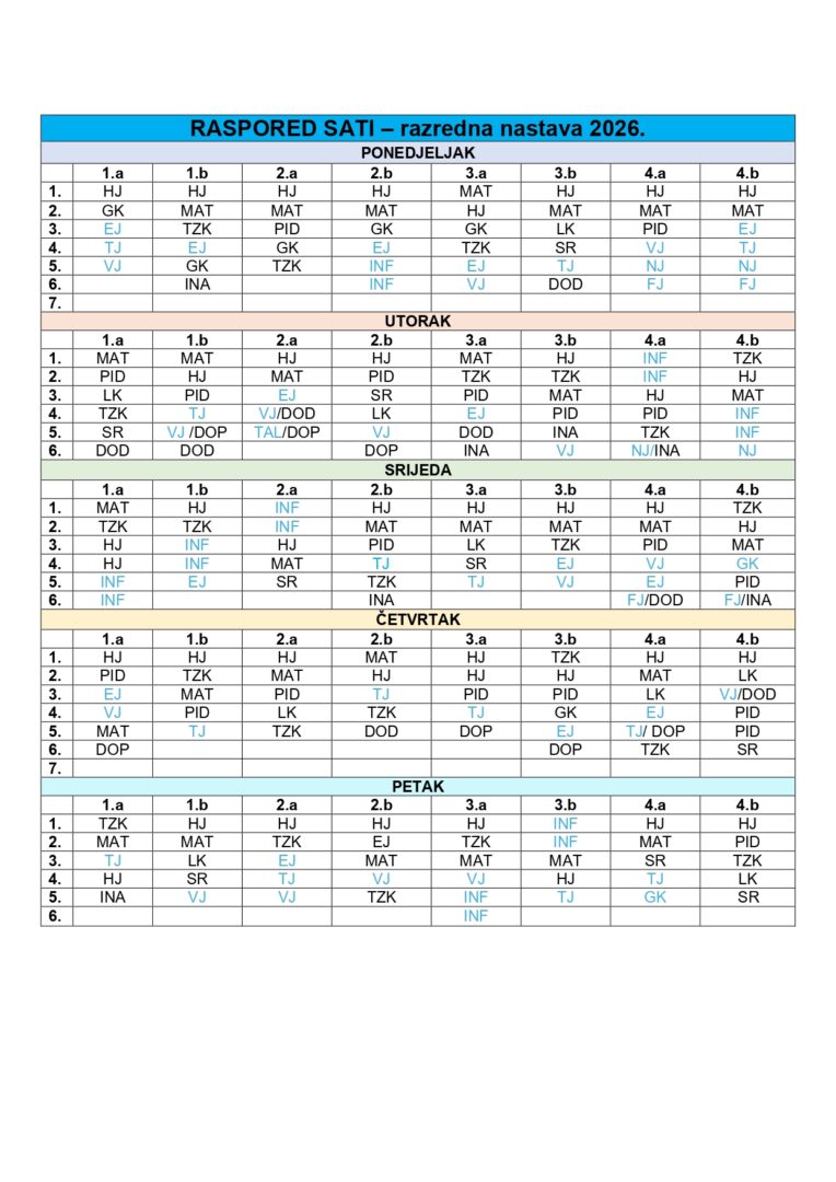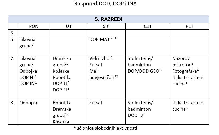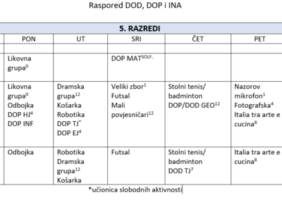 Raspored sati te DOD/DOP/INA Raspored sati za razrednu nastavu Raspored sati za predmetnu nastavu Raspored za DOP/DOD/INA