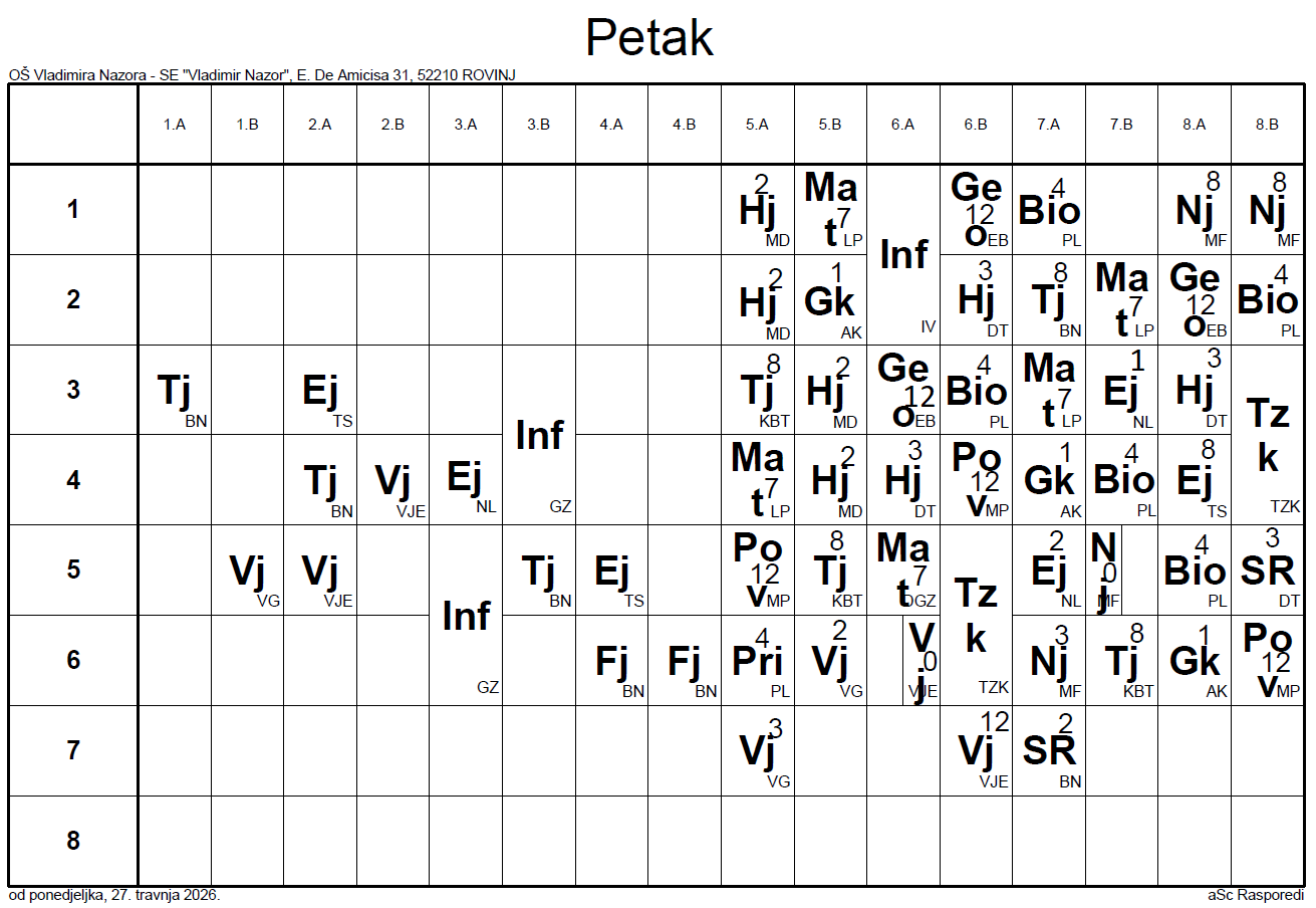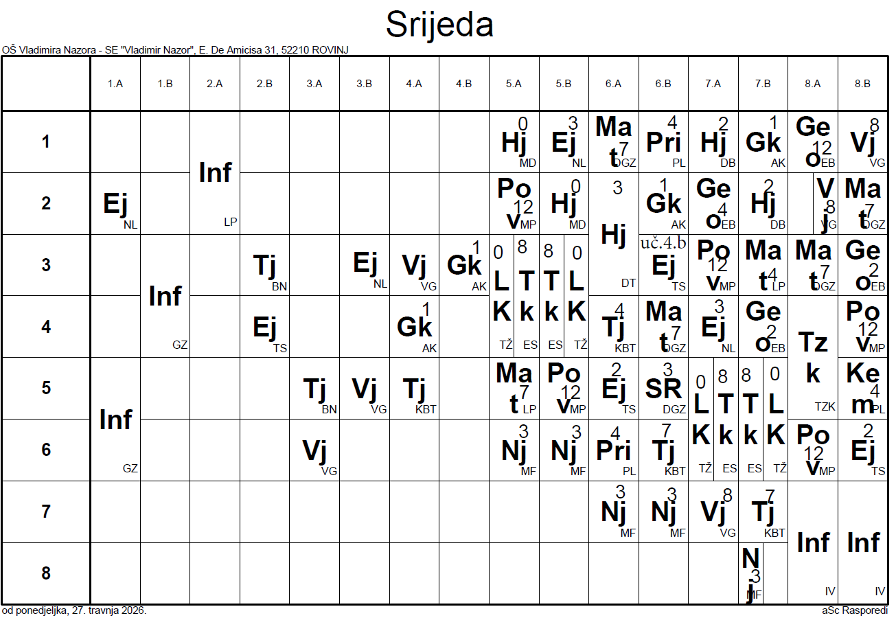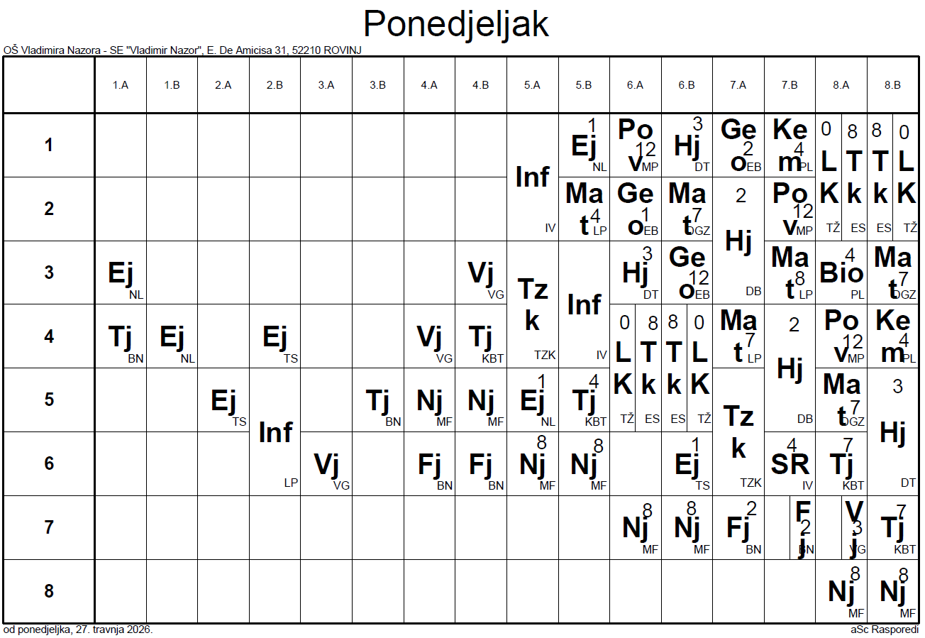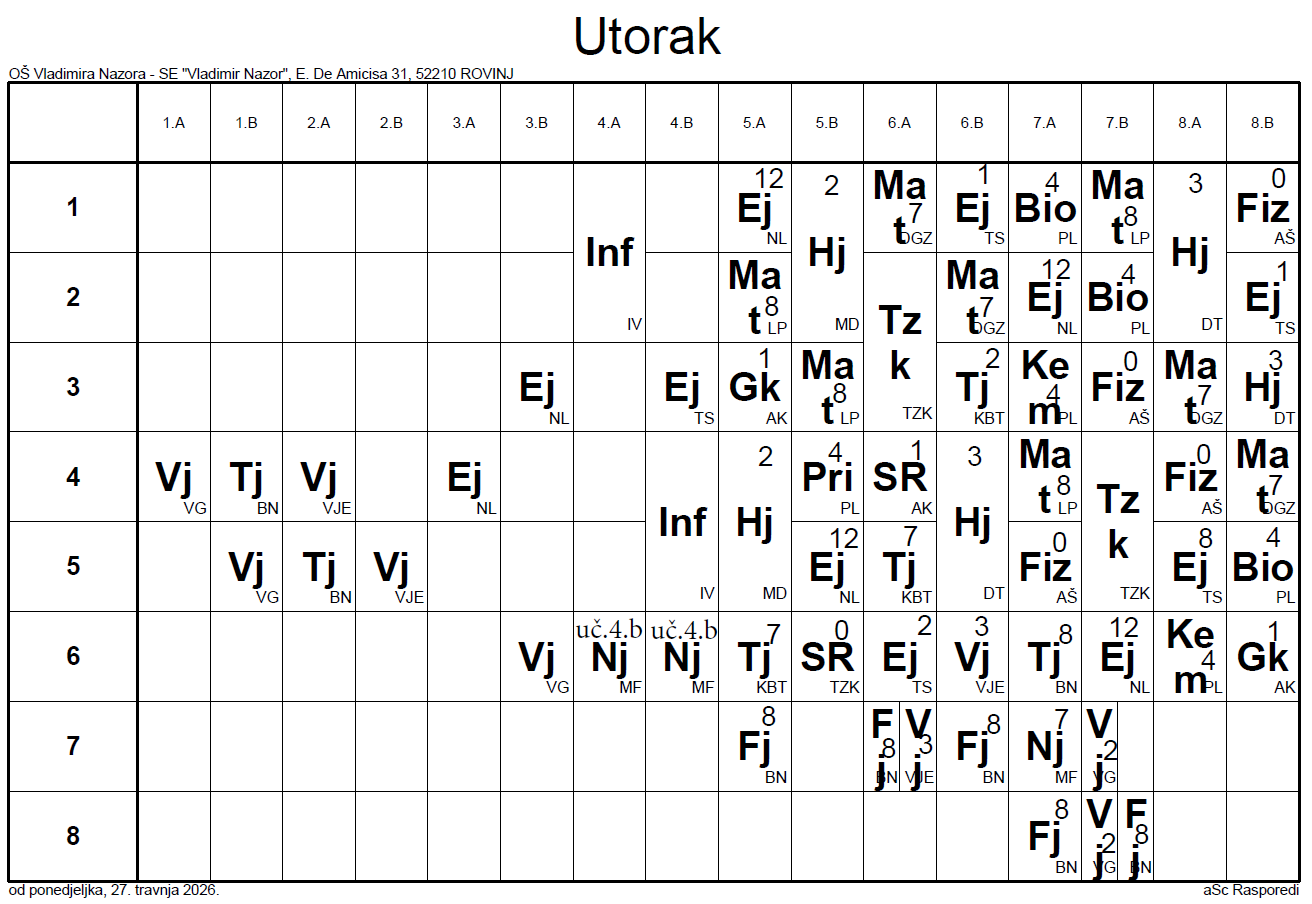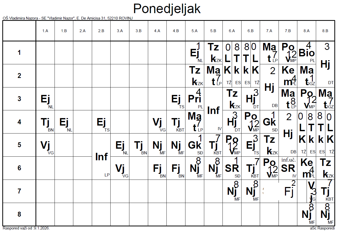 Raspored sati te DOD/DOP/INA Raspored sati za razrednu nastavu Raspored sati za predmetnu nastavu Raspored za DOP/DOD/INA