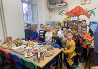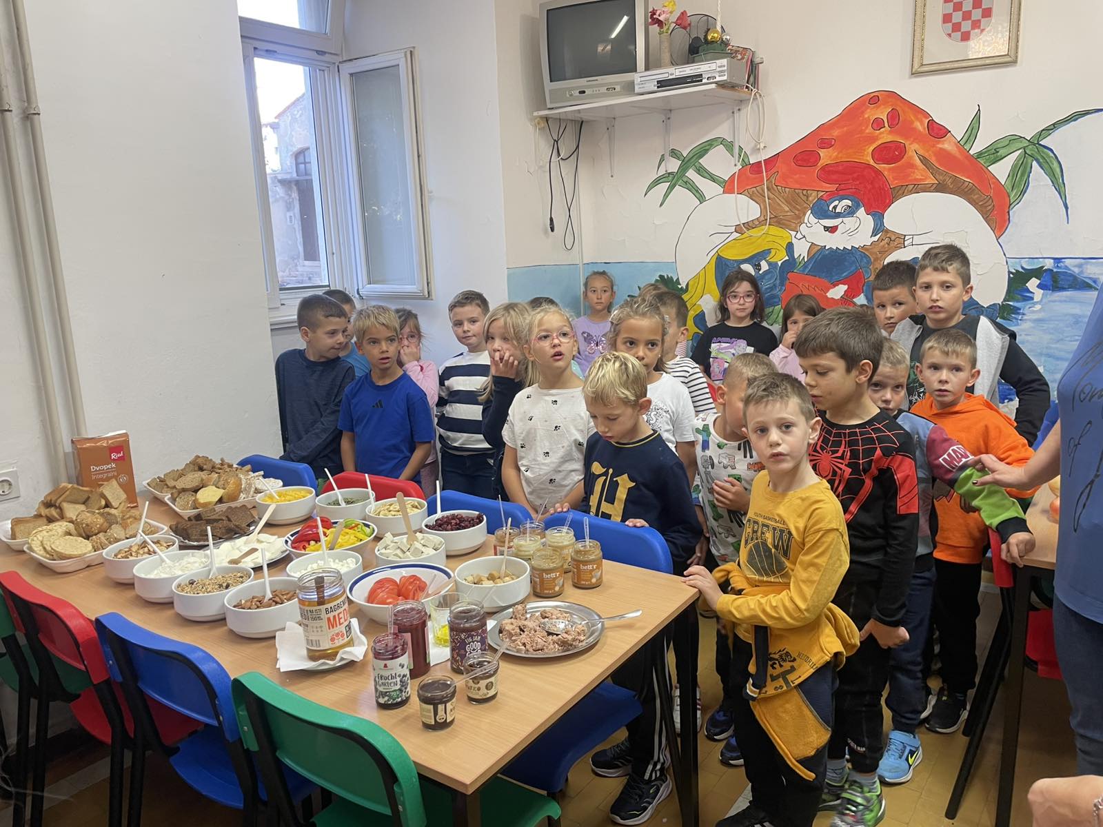 Prošli tjedan je u školi obilježen Tjedan zdravog doručka u sklopu kojeg su učenici razredne nastave imali pred sobom razne izazove. Izazov Doručak pod povećalom – što jedemo svaki dan? Odradili su trećaši koji su razgovarali o svojim jutarnjim navikama i učili o važnosti zdravog, raznolikog doručka. Na kraju su donijeli zdrave namirnice i zajedno pripremili zajednički doručak. Izazov Doručkom oko svijeta! Odradili su četvrtaši koji su istraživali doručke iz različitih zemalja poput Japana, Italije i Meksika te procjenjivali koliko su zdravi i što bi mogli uvrstiti u svoj jelovnik. Izazov Doručak za svakoga – jednaki smo iako jedemo različito! odradili su drugaši koji su kroz film o djevojčici s celijakijom učili o posebnim prehrambenim potrebama i birali proizvode koje ona smije jesti. Također su učili kako davati pozitivne i podržavajuće komentare. Hrabri izazov! Odradili su prvašići koji su u školskoj kuhinji isprobali nove i zdrave namirnice poput soje, sjemenki i različitih napitaka te rado degustirali okuse koje su prvi put probali. Posljednji izazov Okusi koji nas spajaju! odradilo je nekoliko učenika koji su izradili zid zahvalnosti s popisom zdravih namirnica i porukama zahvale kuharicama, zaključivši da je tjedan zdravog doručka bio vrlo uspješan. Također, pedagoginja je u drugom razredu održala radionicu o sprečavanju bacanja hrane kroz priču „Kako su Dora i Mario spasili hranu“, a učenici su raspravljali kako mogu smanjiti otpad kod kuće.