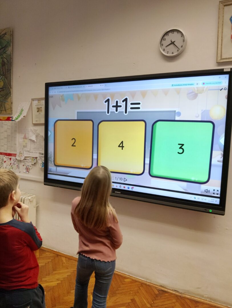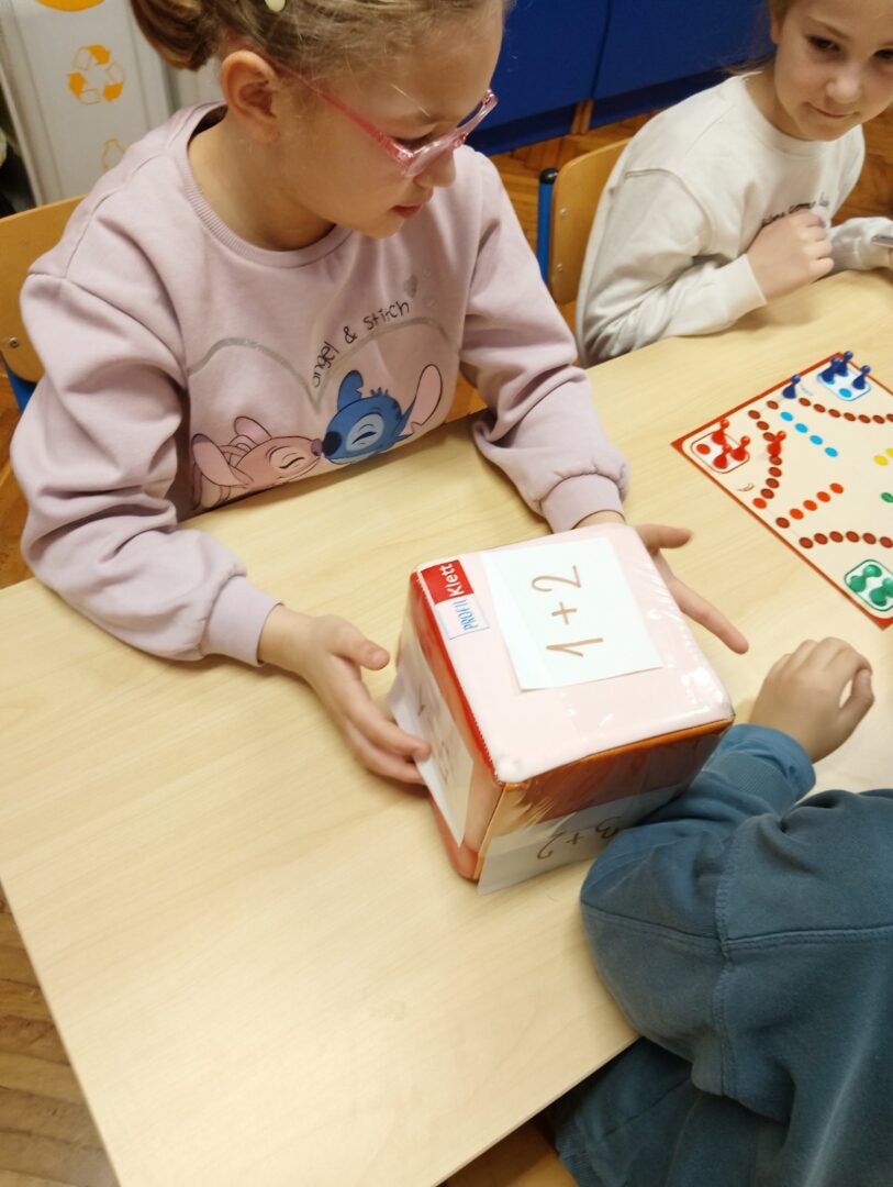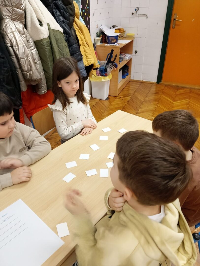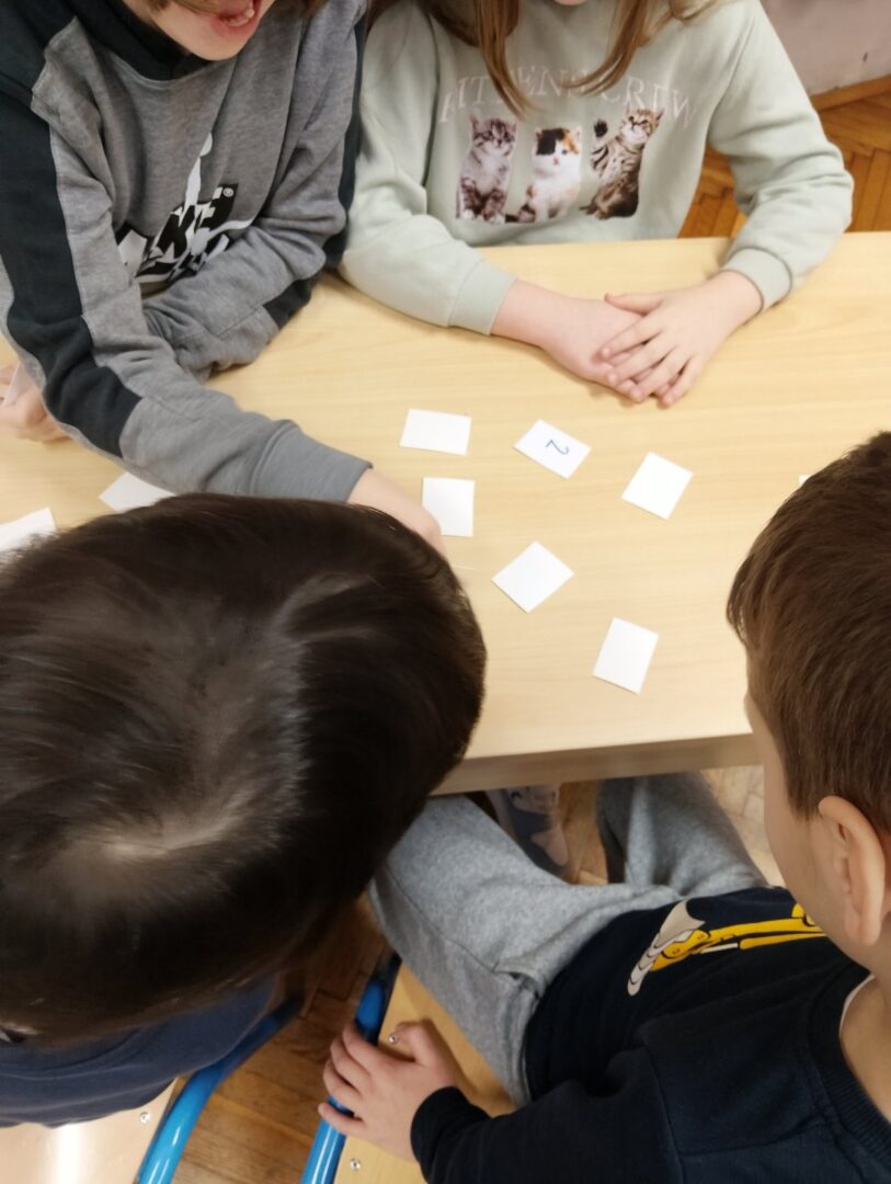Učenici prvog razreda pokazali su kako Matematika može biti jako zabavna. Kao motivacijsku aktivnost učiteljica je osmislila da se učenici podjele u dvije grupe, izvlače matematički zadatak s rješenjem, a zatim da odluče je li spomenuti zadatak točno riješen ili krivo te da ovisno o tome ubace u kanticu „točno“ ili „netočno“. Osim preciznosti, za ovaj je zadatak bila potrebna i brzina! Nadalje, učiteljica im je priredila nekoliko igara; memory, kartice s brojevima, Čovječe ne ljuti se te digitalni kviz u Wordwall-u. Sve igre imale su istu tematiku, zbrajanje i oduzimanje do broja 5. Učenici su bili podijeljeni u grupe, a grupe su se izmjenjivale tako da svaka odigra sve igre. Svi su učenici bili aktivno uključeni u rad, motivirani i zainteresirani. Ovaj je sat Matematike dokaz kako se kroz igru najlakše i najbrže uči te da i naizgled teško gradivo može biti prava zabava!