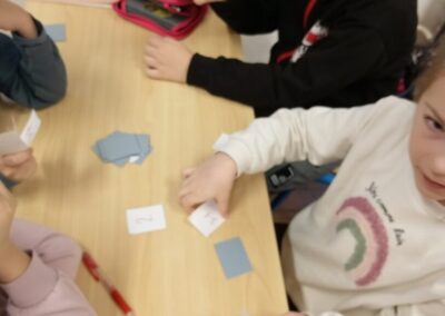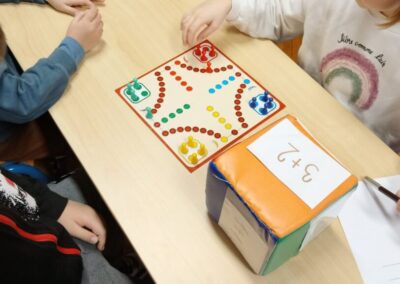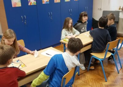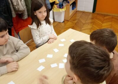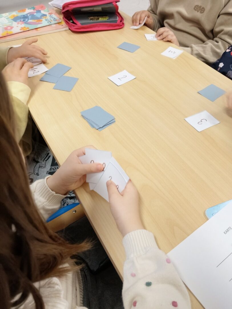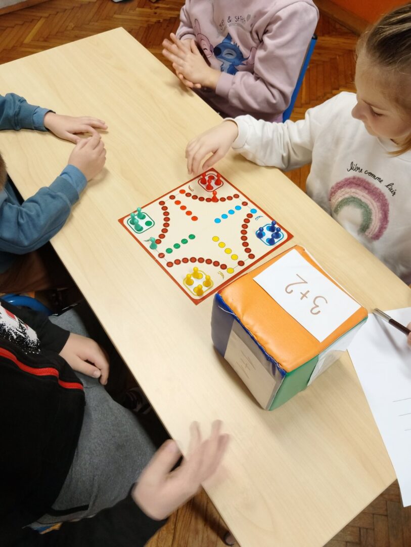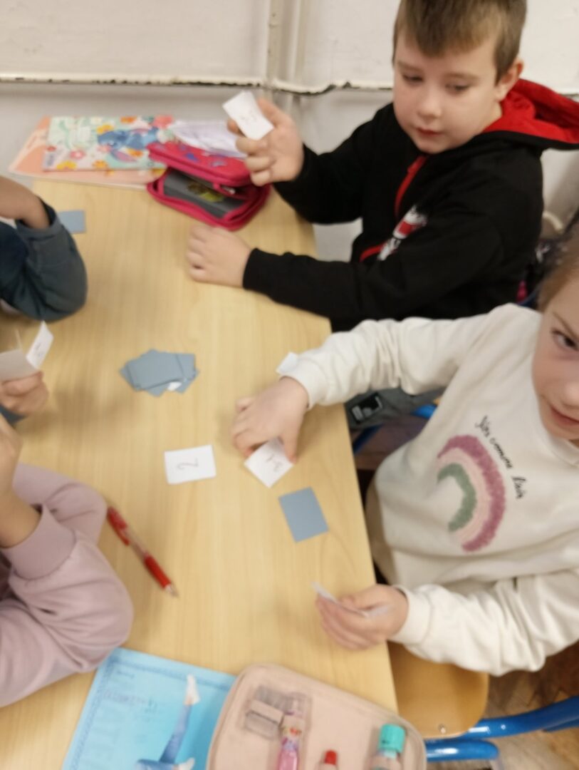 Učenici prvog razreda pokazali su kako Matematika može biti jako zabavna. Kao motivacijsku aktivnost učiteljica je osmislila da se učenici podjele u dvije grupe, izvlače matematički zadatak s rješenjem, a zatim da odluče je li spomenuti zadatak točno riješen ili krivo te da ovisno o tome ubace u kanticu „točno“ ili „netočno“. Osim preciznosti, za ovaj je zadatak bila potrebna i brzina! Nadalje, učiteljica im je priredila nekoliko igara; memory, kartice s brojevima, Čovječe ne ljuti se te digitalni kviz u Wordwall-u. Sve igre imale su istu tematiku, zbrajanje i oduzimanje do broja 5. Učenici su bili podijeljeni u grupe, a grupe su se izmjenjivale tako da svaka odigra sve igre. Svi su učenici bili aktivno uključeni u rad, motivirani i zainteresirani. Ovaj je sat Matematike dokaz kako se kroz igru najlakše i najbrže uči te da i naizgled teško gradivo može biti prava zabava!