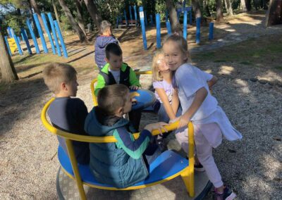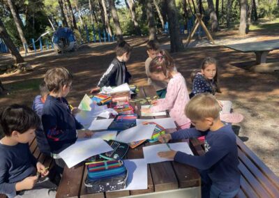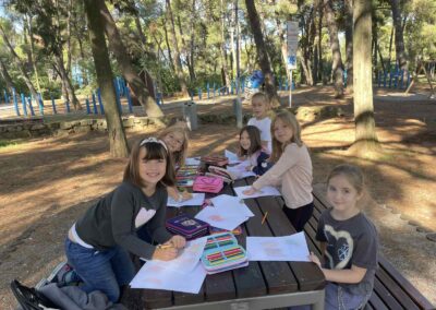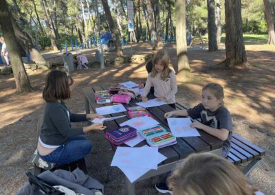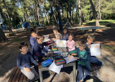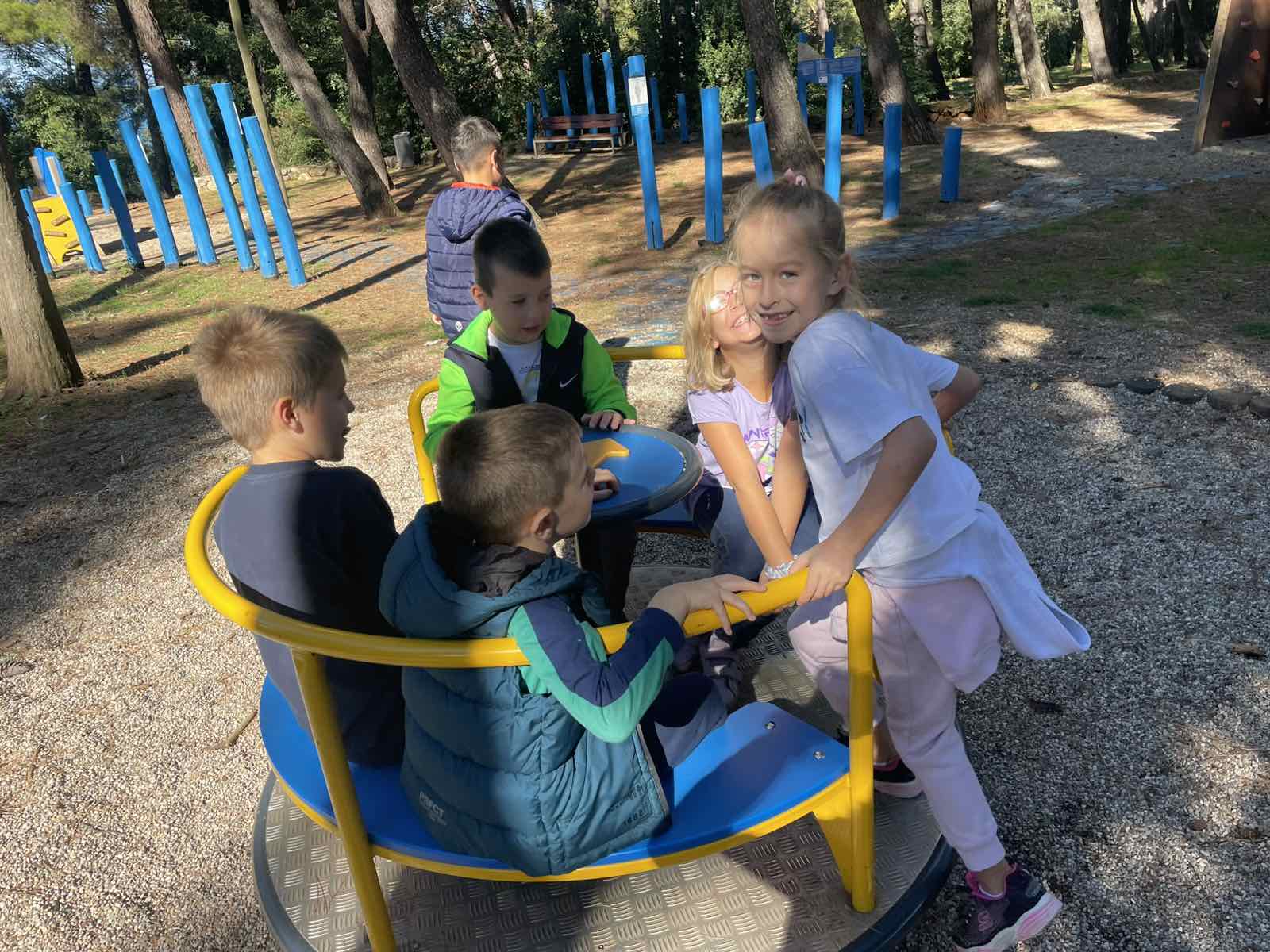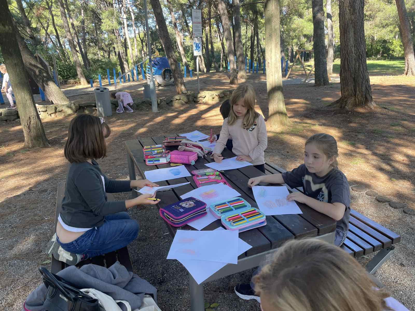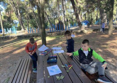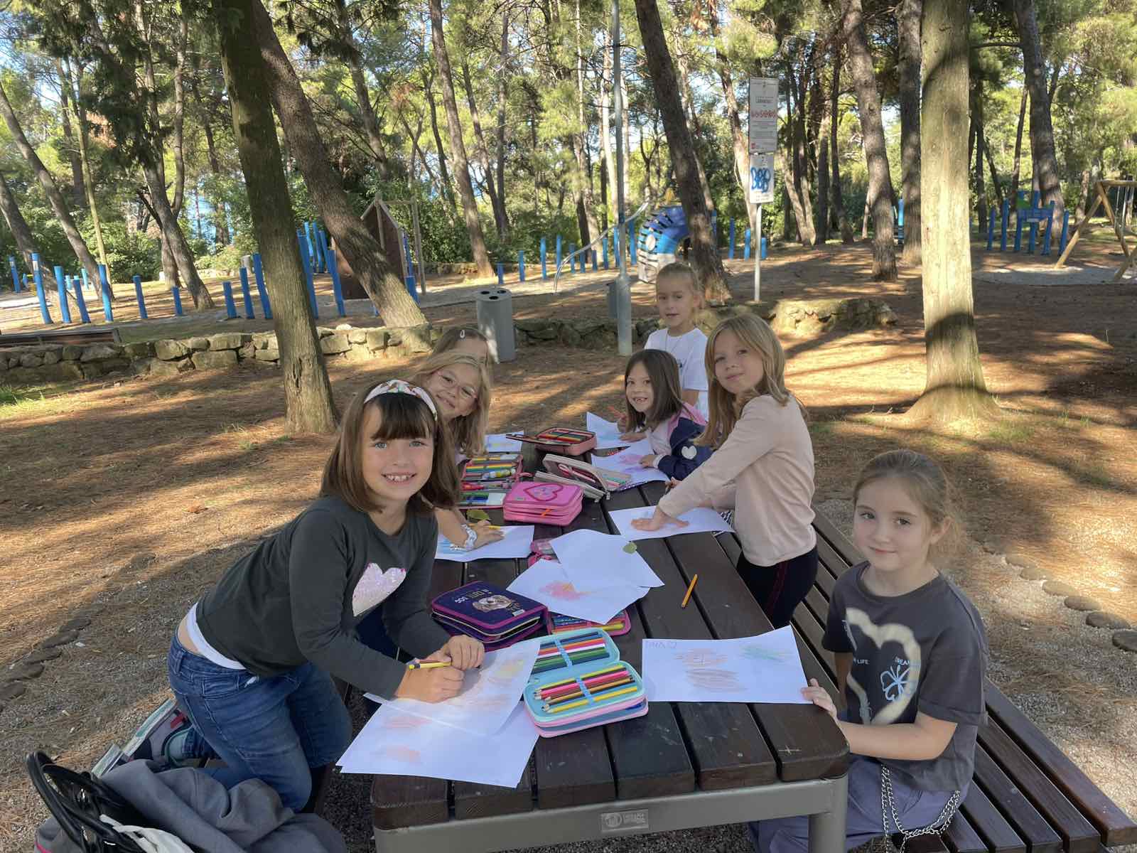 Sunčani jesenski dan učenici 1.A razreda proveli su u učionici na otvorenom, okruženi toplim bojama jeseni i svježim zrakom. Tijekom boravka u prirodi promatrali su promjene koje jesen donosi – opadanje lišća, zrele plodove i bogatstvo boja u krošnjama drveća. Učenici su s velikim zanimanjem razgovarali o onome što su uočili te su naučili prepoznati razne znakove promjene godišnjeg doba. Inspirirani viđenim, likovno su se izražavali koristeći jesenske motive i boje, stvarajući vesele radove pune mašte. Ovakva nastava u prirodi potaknula je njihovu radoznalost, kreativnost i ljubav prema okolišu, a ujedno im pružila i ugodan dan u druženju i učenju na svježem zraku.